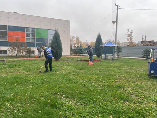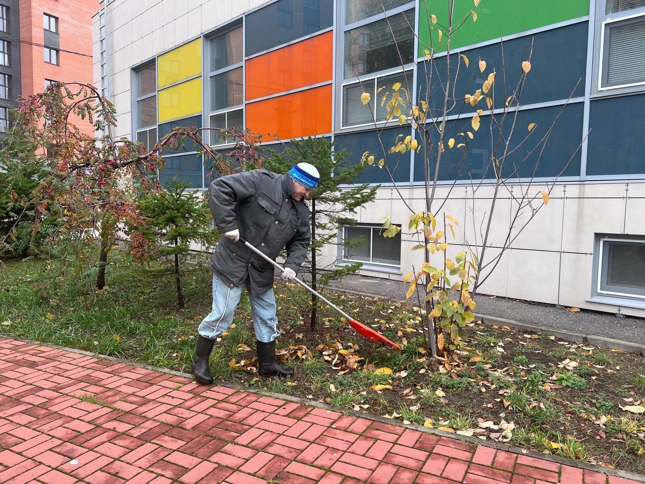 В ходе мероприятия сотрудники активно убрали мусор и листву, приведя в порядок территорию вокруг здания.